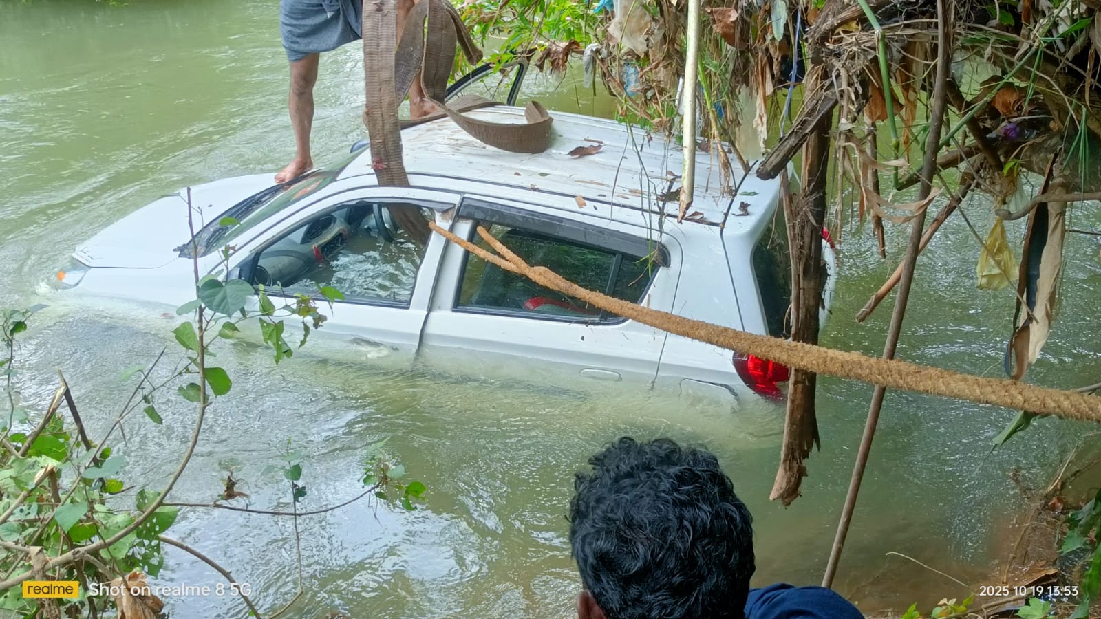കനത്ത മഴയിൽ കാർ ഒലിച്ചു പോയി.