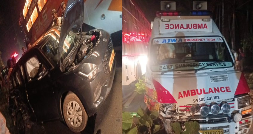 രോഗിയുമായി മുക്കത്തെ ആശുപത്രിയിലേക്ക് വരികയായിരുന്ന ആംബുലൻസും മുക്കം ഭാഗത്തുനിന്നും വന്ന ഷിഫ്റ്റ് കാറുമായി കൂട്ടി ഇടിച്ചത്.