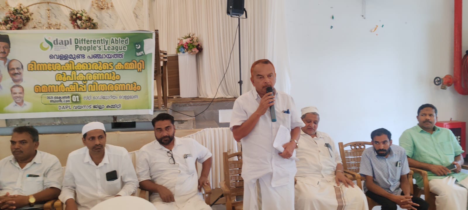 വെള്ളമുണ്ട.ഭിന്നശേഷിക്കാരെ യടക്കം സമൂഹത്തിലെ പാവപ്പെട്ട,ദുർബല വിഭാഗങ്ങളെ ചേർത്ത് പിടിച്ച് ആവശ്യമായ സഹായങ്ങൾ ചെയ്തു കൊടുക്കുന്ന പ്രസ്ഥാന മാണ് മുസ്ലിം ലീഗ് എന്ന് ജില്ലാ മുസ്ലിം ലീഗ് വൈസ് പ്രസിഡന്റ് റസാഖ് കൽപ്പറ്റ പറഞ്ഞു.ഡി.എ.പി.എൽ(ഭിന്നശേഷികൂട്ടായ്മ).വെള്ളമുണ്ട പഞ്ചായത്ത് കൺവെൻഷൻ ഉൽഘാടനം ചെയ്തു സംസാരിക്കുകയായിരുന്നു അദ്ദേഹം.സിറ്റി ഓഡിറ്റോറിയത്തിൽ ചേർന്ന യോഗത്തിൽ ജില്ലാ പ്രസിഡന്റ് ഹംസ അമ്പലപ്പുഴ അദ്ധ്യക്ഷം വഹിച്ചു.