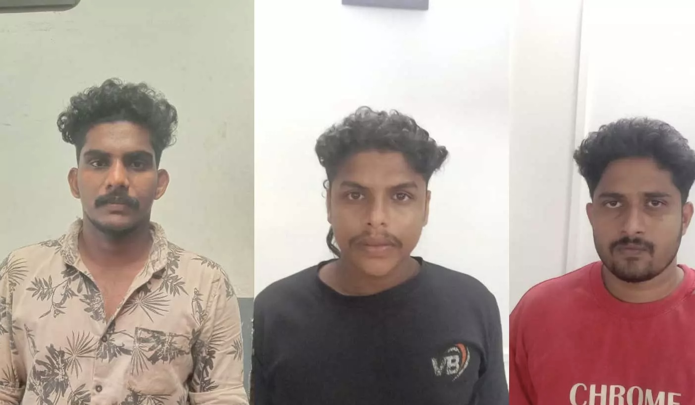 ചാപ്പനങ്ങാടി സ്വദേശി മുഹമ്മദ് റാഫി, അങ്ങാടിപ്പുറം സ്വദേശി ഫൗസാൻ, കടുങ്ങപുരം സ്വദേശി ജംഷീർ എന്നിവരാണ് പിടിയിലായത്. 35 കിലോമീറ്ററോളം പിന്തുടർന്നാണ് പ്രതികളെ പിടികൂടിയതെന്ന് പൊലീസ് പറഞ്ഞു.