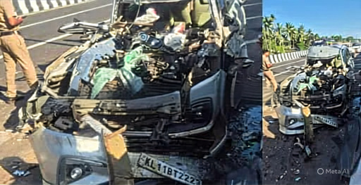 നിർത്തിയിട്ട ടൂറിസ്റ്റ് ബസ്സിന് പിറകിൽ കാറിടിച്ച് മൂന്ന് കുട്ടികൾ ഉൾപ്പെടെ എട്ടുപേർക്ക് പരിക്ക്