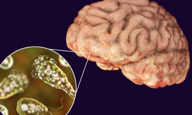 നെഗ്ലേറിയ ഫൗലേറി എന്ന അമീബ വിഭാഗത്തില്പ്പെട്ട രോഗാണുവാണ് രോഗം വരുത്തുന്നത്. വേനല്ക്കാലത്ത് ചൂടായി കെട്ടിക്കിടക്കുന്ന വെള്ളം അമീബയ്ക്ക് വളരാന് അനുകൂല സാഹചര്യമാണ് ഒരുക്കുന്നത്. നിശ്ചലമായ വെള്ളത്തിന്റെ അടിയിലുള്ള ചെളിയിലും ചേറിലുമാണ് ഇവ സാധാരണയായി തങ്ങുന്നത്. ഇത്തരം വെള്ളം കലങ്ങിമറിയുമ്പോള്, അമീബകള് ചെളിയോടൊപ്പം മുകളിലേക്ക് വരാന് സാധ്യതയുണ്ട്.