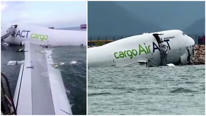 ദുബൈയിൽ നിന്ന് വന്ന ചരക്ക് വിമാനം ഹോങ്കോങ് അന്താരാഷ്ട്ര വിമാനത്താവളത്തിൽ ഇറങ്ങുന്നതിനിടെയാണ് റൺവേയിൽനിന്ന് തെന്നിമാറി കടലിൽ പതിച്ചത്. ബോയിങ് 747 ചരക്ക് വിമാനം വിമാനത്താവളത്തിന്റെ ഭിത്തിക്കരികെ കടലിൽ ഭാഗികമായി വെള്ളത്തിൽ മുങ്ങിക്കിടക്കുന്ന ചിത്രം പുറത്തുവന്നു. വിമാനത്തിന്റെ നോസ്, ടെയിൽ എന്നിവ വേർപെട്ട നിലയിലാണ്.
