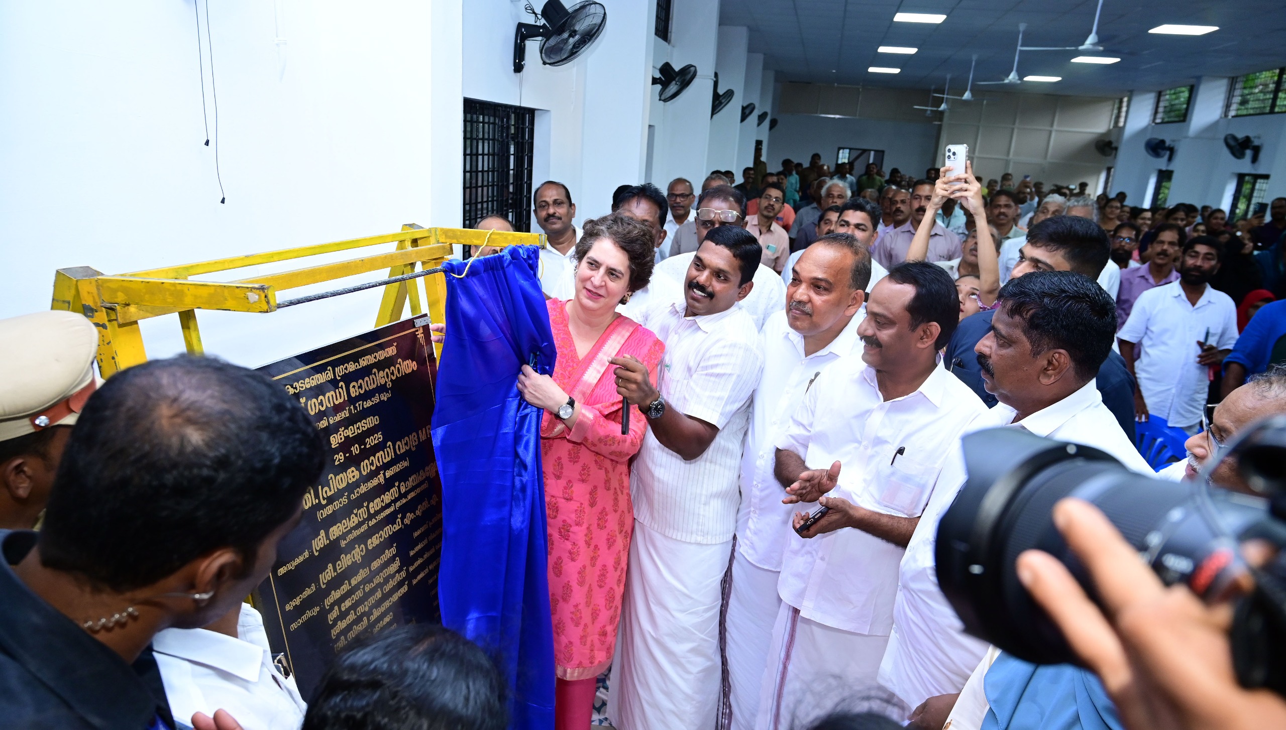 കോടഞ്ചേരി: കോടഞ്ചേരി ഗ്രാമപഞ്ചായത്ത് ഭരണസമിതിയുടെ നേതൃത്വത്തിൽ 1.17 കോടി രൂപ മുതൽ മുടക്കിൽ ഗ്രാമസഭ അടക്കമുള്ള വിവിധങ്ങളായ മീറ്റിംഗുകൾ സംഘടിപ്പിക്കുവാൻ വേണ്ടി ഗ്രാമപഞ്ചായത്ത് ആസ്ഥാന മന്ദിരത്തിന് മുകളിലായി ലിഫ്റ്റ് സൗകര്യങ്ങളോടുകൂടി 400 പേർക്ക് ഇരിക്കാൻ സൗകര്യം ഉള്ള രാജീവ് ഗാന്ധി ഓഡിറ്റോറിയം നിർമ്മാണം പൂർത്തീകരിച്ചതിന്റെ ഉദ്ഘാടനവും ഡെസ്റ്റിനേഷൻ ചാലഞ്ചിൽ ഉൾപ്പെടുത്തി ടൂറിസം വകുപ്പിന്റെ 50 ലക്ഷം രൂപ ധനസഹായത്തോടുകൂടി, രണ്ടു കോടി രൂപ മുതൽമുടക്കിൽ നിർമ്മിക്കുന്ന പതങ്കയം തൂക്കുപാലത്തിന്റെയും 'ടേക്ക് എ ബ്ലേക്ക്' കംഫർട്ട് സ്റ്റേഷൻ്റെ പ്രവർത്തി ഉദ്ഘാടനവും ഭിന്നശേഷിക്കാരായ കുട്ടികൾക്ക് വേണ്ടി രാഹുൽ ഗാന്ധി എം.പിയുടെ എം.പി ഫണ്ടിൽ നിന്നും അനുവദിച്ച 55 ലക്ഷം രൂപയും ഗ്രാമപഞ്ചാ യത്ത് വിഹിതമായി 10 ലക്ഷം രൂപയടക്കം 65 ലക്ഷം രൂപ മുതൽ മുടക്കി നിർമ്മാണം പൂർത്തീകരിച്ച സിഡിഎംസി ബിൽഡിങ്ങിന്റെ ഉദ്ഘാടനവും സംയുക്തമായി വയനാട് പാർലമെൻറ് മണ്ഡലം എം.പി പ്രിയങ്ക ഗാന്ധി ഗ്രാമപഞ്ചായത്ത് ഓഡിറ്റോറിയത്തിൽ വച്ച് നിർവഹിച്ചു.