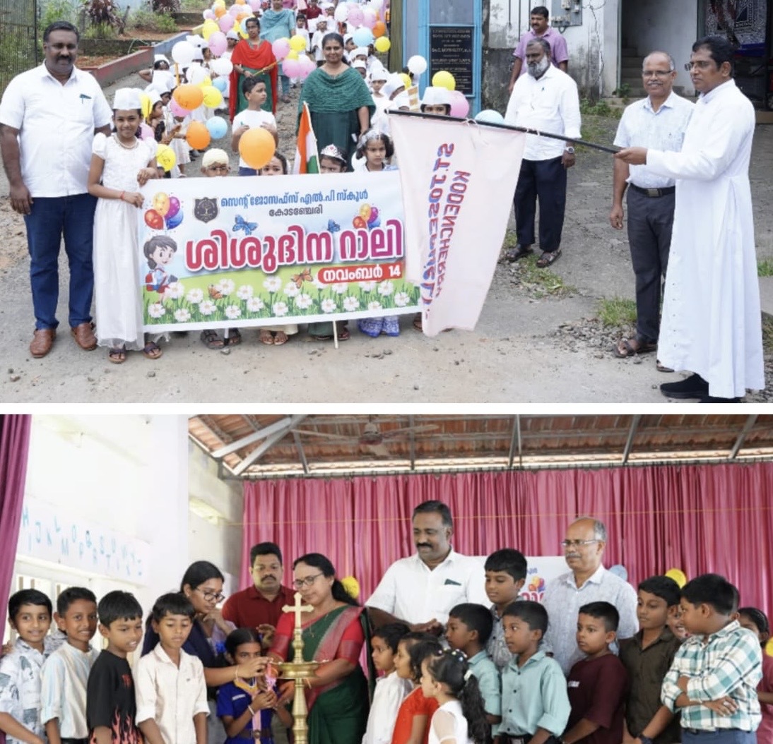 കോടഞ്ചേരി:ശിശുദിനത്തോടനുബന്ധിച്ച് കോടഞ്ചേരി സെൻ്റ് ജോസഫ്സ് എൽ.പി സ്കൂളിൽ വിവിധ പരിപാടികൾ സംഘടിപ്പിച്ചു. ശിശുദിന റാലി സ്കൂൾ മാനേജർ റവ ഫാദർ കുര്യാക്കോസ് ഐക്കൊളമ്പിൽ ഫ്ലാഗ് ഓഫ് ചെയ്തു. നിറപ്പകിട്ടാർന്ന വേഷവിധാനങ്ങളുമായി കെ ജി ക്ലാസ്സ് മുതലുള്ള കുരുന്നുകൾ പങ്കെടുത്ത റാലി ഏവരുടെയും ശ്രദ്ധപിടിച്ചുപറ്റി. തുടർന്ന് ഈ വർഷത്തെ സബ്ജില്ലാ - സ്കൂൾ തല കലാമേളകളിലെ വിജയികൾക്കുള്ള സർട്ടിഫിക്കറ്റുകളും സമ്മാനങ്ങളും വിതരണം ചെയ്തു. സ്കൂൾ ഓഡിറ്റോറിയത്തിൽ നടന്ന അനുമോദന സംഗമം ഉപജില്ലാ വിദ്യാഭ്യാസ ഓഫീസർ പൗളി മാത്യൂ ഉദ്ഘാടനം ചെയ്തു. പി.ടി.എ പ്രസിഡണ്ട് ആൻ്റണി ചൂരപ്പൊയ്കയിൽ അധ്യക്ഷത വഹിച്ചു. എൽ.എസ്.എസ് ജേതാക്കൾക്കുള്ള മെമൻ്റോകളും എ. ഇ. ഒ വിതരണം ചെയ്തു. ഹെഡ്മാസ്റ്റർ ജിബിൻ പോൾ സ്വാഗതവും സ്റ്റാഫ് പ്രതിനിധി ഡെന്നീസ് എൻ സി നന്ദിയും പറഞ്ഞു. ശിശുദിനത്തോടനുബന്ധിച്ച് കുട്ടികൾക്ക് പായസ വിതരണവും നടത്തി.
