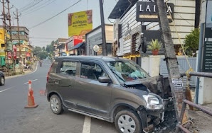താമരശ്ശേരി നിയന്ത്രണം വിട്ട് കാർ വൈദ്യുതി തൂണിൽ ഇടിച്ച് യാത്രികർക്ക് പരിക്ക്
