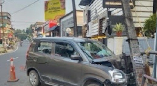 താമരശ്ശേരി നിയന്ത്രണം വിട്ട് കാർ വൈദ്യുതി തൂണിൽ ഇടിച്ച് യാത്രികർക്ക് പരിക്ക്