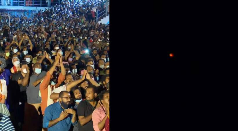 ശബരിമലയെ ഭക്തിസാന്ദമാക്കി പൊന്നമ്പല മേട്ടിൽ മകരജ്യോതി തെളിഞ്ഞു. തിരുവാഭരണ ഘോഷയാത്ര വൈകിട്ട് 6.20 ഓടെ സന്നിധാനത്തേക്ക് എത്തി. പന്തളം കൊട്ടാരത്തിൽ നിന്ന് എത്തിച്ച തിരുവാഭരണം ചാർത്തിയുള്ള ദീപാരാധന വൈകിട്ട് 6.40 ന് നായിരുന്നു. ഈ സമയം തന്നെ പൊന്നമ്പലമേട്ടിൽ മകരവിളക്ക് തെളിഞ്ഞതോടെ വിശ്വാസികൾ ദർശനപുണ്യം നേടി.