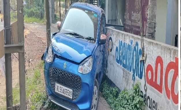 താമരശ്ശേരി:സംസ്ഥാനപാതയിൽ തച്ചംപൊയിൽ ചാലക്കരയിൽ നിയന്ത്രണം വിട്ട കാർ റോഡരികിലെ ടെലിഫോൺ പോസ്റ്റും മതിലും ഇടിച്ച് തർത്തു; കാർ ഡ്രൈവർ പരിക്കേൽക്കാതെ അത്ഭുതകരമായി രക്ഷപ്പെട്ടു.
