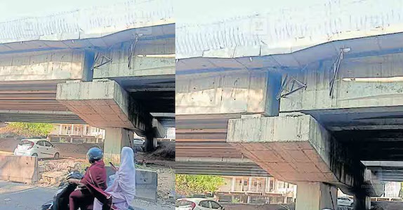 ഉയരപ്പാതയുടെ 6–ാമത്തെ തൂണിലെ ഗർഡറിൽ ആണ് സർവീസ് റോഡിലേക്ക് ഏതു സമയവും വീഴാൻ പാകത്തിൽ ഭാരമേറിയ തകിടുകൾ തൂങ്ങി കിടക്കുന്നത്. ഇരു ഭാഗത്തുമായി 3 ഇരുമ്പ് തകിടുകൾ ഉള്ളതിൽ ഒന്ന് ചെറിയൊരു കമ്പിയുമായി ഘടിപ്പിച്ച നിലയിലാണ്. മറ്റ് രണ്ടും ചെറിയ നട്ട് കൊണ്ട് ബന്ധിപ്പിച്ചിട്ടുണ്ട് എങ്കിലും വീഴാൻ ഉള്ള സാധ്യത തള്ളിക്കളയാനാവില്ല.