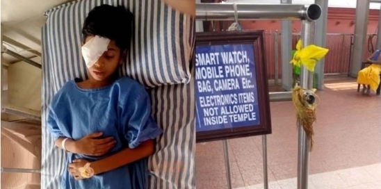 ഞായറാഴ്ച രാത്രിയാണ് മാതാപിതാക്കൾക്കൊപ്പം ക്ഷേത്രദർശനം നടത്തിയ കുട്ടിക്ക് അപകടം സംഭവിച്ചത്. അനിവിൻ്റെ കൃഷ്ണമണിക്കും താഴെയും കൺപോളയ്ക്കുമാണ് പരിക്കേറ്റത്. ഭഗവതി ക്ഷേത്രത്തിനു സമീപത്തെ വാതിലിലൂടെ പുറത്തിറങ്ങിയപ്പോൾ സ്റ്റീൽ കൈവരിയുടെ പൊട്ടിയ അറ്റം കണ്ണിൽ തറച്ചുകയറുകയായിരുന്നു.