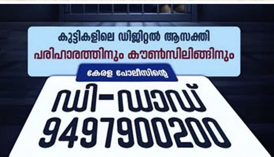 വർധിച്ചു വരുന്ന ഡിജിറ്റൽ ഉപകരണങ്ങളുടെ ഉപയോഗം കുട്ടികളിലും മുതിർന്നവരിലും ഒരുപോലെ പ്രശ്നങ്ങളുണ്ടാക്കുന്നു. അമിതമായ സ്ക്രീൻ ടൈം പഠനത്തെയും സാമൂഹിക ഇടപെടലുകളെയും ബാധിക്കുമ്പോൾ, സഹായത്തിനായി കേരള പോലീസിന്റെ ‘ഡി-ഡാഡ്’ (D-Dad) അഥവാ ഡിജിറ്റൽ ഡി-അഡിക്ഷൻ പദ്ധതി രംഗത്തുണ്ട്. കേരള പോലീസ് സോഷ്യൽ പൊലീസിങ് വിഭാഗത്തിന്റെ നേതൃത്വത്തിൽ കുട്ടികളിലെ മൊബൈൽ, ഇൻറർനെറ്റ് അടിമത്തത്തെ നിയന്ത്രിക്കുന്നതിനായി ആരംഭിച്ച പദ്ധതിയാണ് ഡി-ഡാഡ്. കൗൺസിലിങ്ങിലൂടെ കുട്ടികൾക്ക് ഡിജിറ്റൽ അടിമത്തത്തിൽ നിന്ന് മോചനം നൽകുക എന്നതാണ് ഈ പദ്ധതിയുടെ ലക്ഷ്യം.
