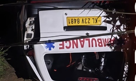 മീനങ്ങാടി കുട്ടിരായിൻ പാലത്തിന് സമീപം പുലർച്ചെയാണ് അപകടുണ്ടായത്. രോഗിയുമായി കോഴിക്കോട് മെഡിക്കൽ കോളേജിലേക്ക് പോകുകയായിരുന്ന ആംബുലൻസ് വൈദ്യുതി പോസ്റ്റിലിടിച്ചതിന് ശേഷമാണ് വീട്ടുമുറ്റത്തേക്ക് മറിഞ്ഞത്. ബത്തേരിയിൽ നിന്ന് ഏഴ് വയസുകാരനെയും കൊണ്ട് പോകുന്നതിനിടെയാണ് അപകടം. ആരുടേയും പരിക്ക് ഗുരുതരമല്ല. പരിക്കേറ്റവരെ മീനങ്ങാടിയിലെ സ്വകാര്യ ആശുപത്രിയിൽ പ്രവേശിപ്പിച്ചു.